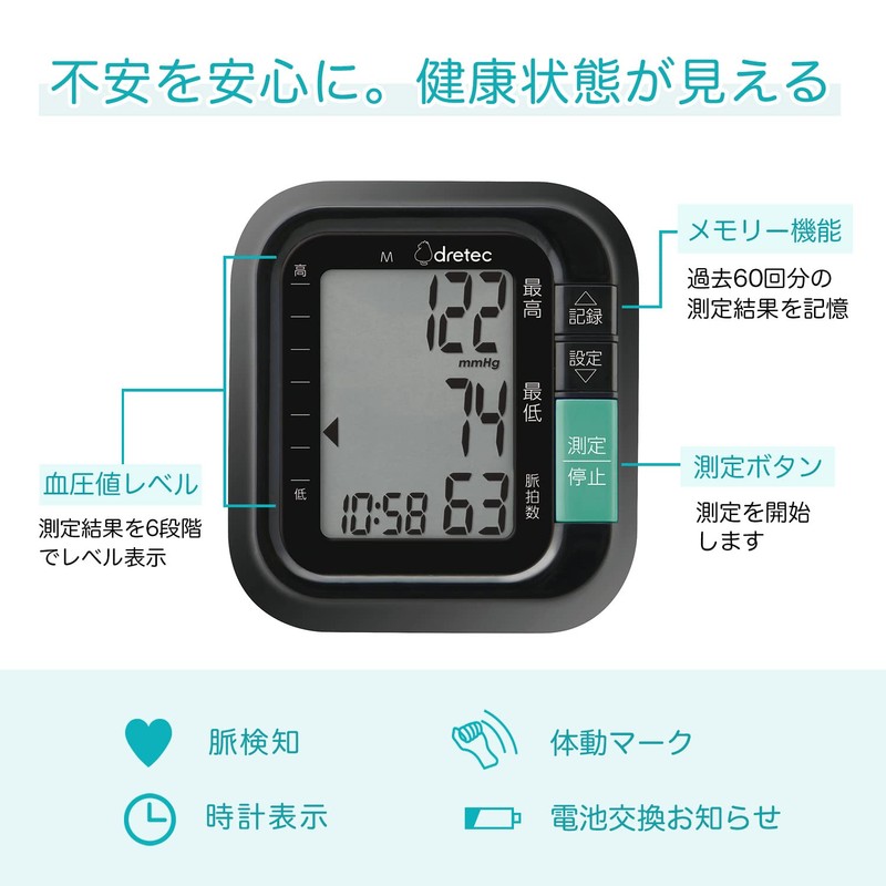 ドリテック(dretec) 手首式血圧計 BM-110ABKDI