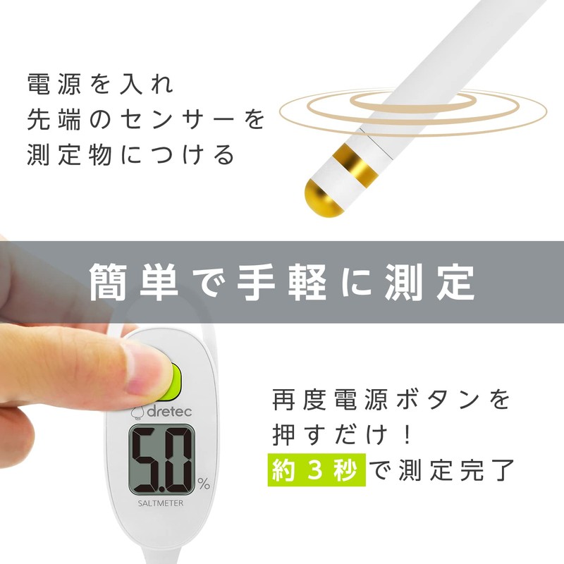 dretec(ドリテック) 塩分濃度計 防水(IPX7)だから丸洗いできる 0.1%単位/最大5%まで計測 大画面で文字が見やすい 塩分計 減塩 塩分計測器 水槽 減塩グッズ