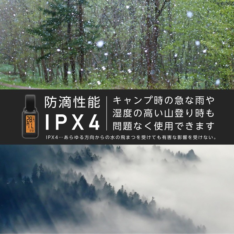 - Splashproof / High Precision Sensor: Equipped with a highly accurate and durable sensor that is even in high humidity environments and harsh environments at high temperatures and low temperatures. Measuring at 5 seconds intervals, you can see the current number immediately. Can be used for a wide range of occasions, such as outdoor activities and snowboardIn addition, the splash-proof design allows you to use it with confidence even if the water drops get stuck on the main unit in sudden rain. This IPX4 equivalent can be used in everyday situations where water is splashed