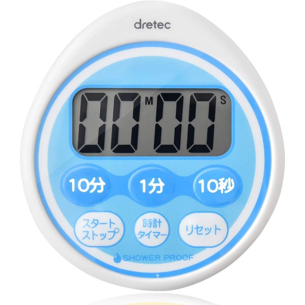 dretec Timer, Splashproof, Maximum Set, 99 Minutes, 50 Seconds, Digital Timer, blue