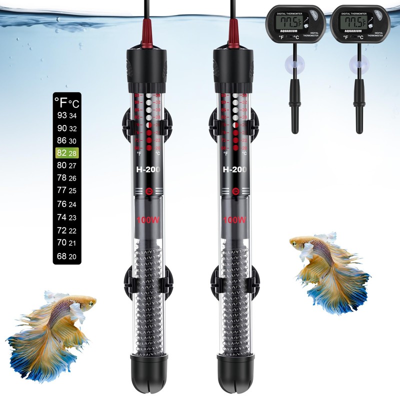 Dreyoo 2 Set 100W Aquarium Fish Tank Heater, Submersible Aquarium Heater with Thermometers and Suckers, Adjustable Knob Aquarium Water Heater Built-in Thermostat for 15-30 Gallon Aquariums