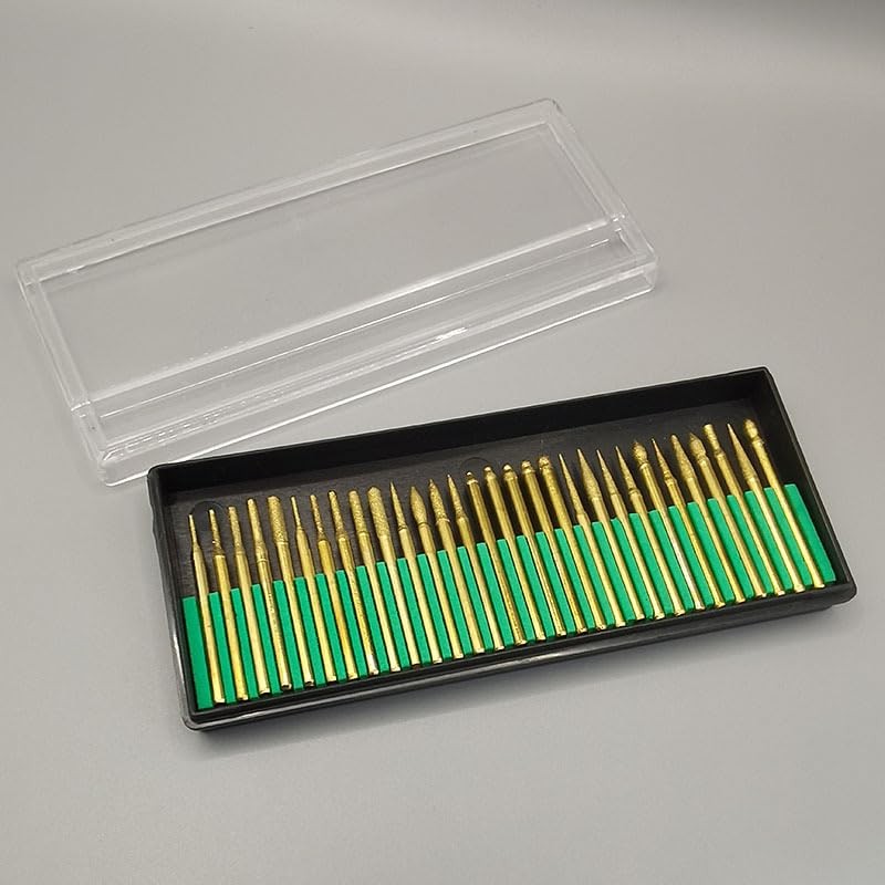 - Diamond Burr Set 30pce 3mm shank 120-150 grit assorted diamond points