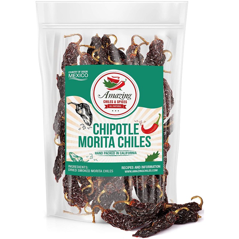 Dried Chipotle Morita Chile Peppers 10 oz – Robust Smokey Flavor, Use For Mexican Recipes, Mole, Sauces, Tamales, Salsa, Meats, Stews. Medium to High Heat - Resealable Bag. by Amazing Chiles & Spices Store