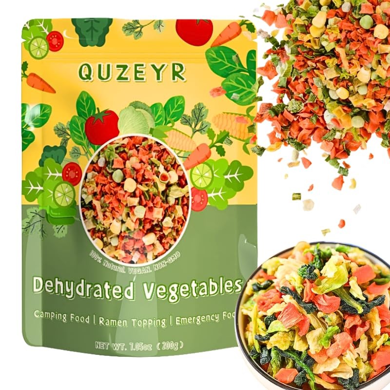 Dried Dehydrated Ramen Topping Vegetables Mix,200g (7.05oz) Carrots, Corn, Peas, Cabbage, Celery, Green Onions, Peppers, Camping Food, Emergency Storage, Soup & Salad Ingredient