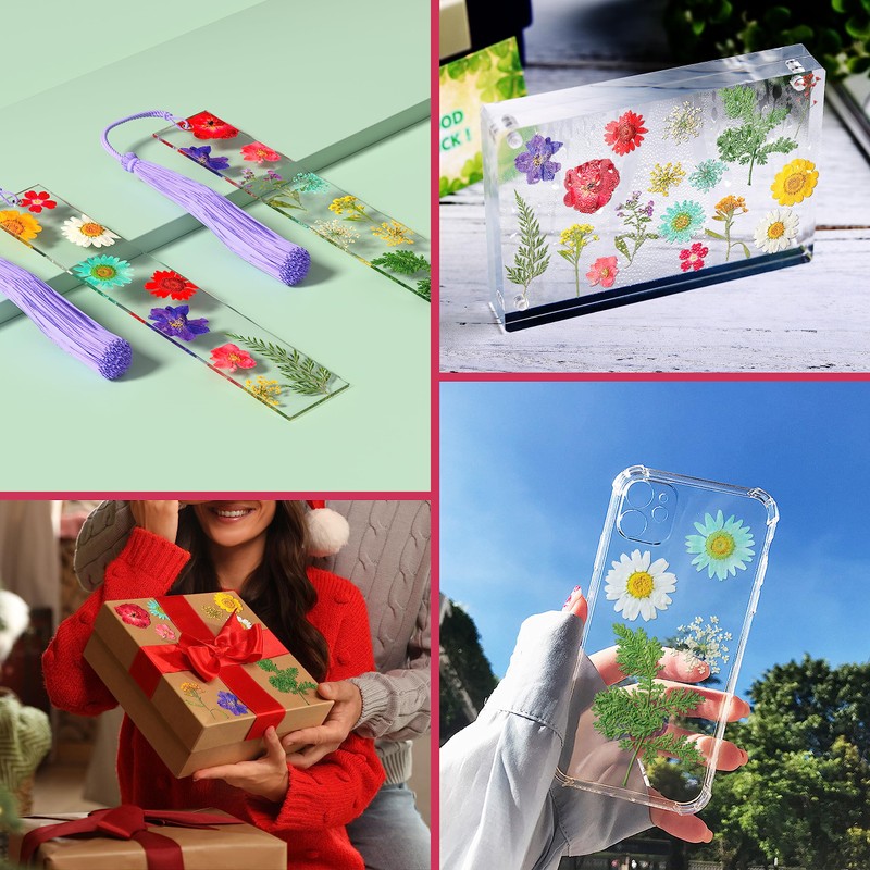 The pressed flower shapes are perfect for handmade bookmarks, resin crafts, scrapbooking, greeting card, cell phone cases, album frame decor, gift packaging materials, or as facial makeup decoration to make you look attractive at parties.
