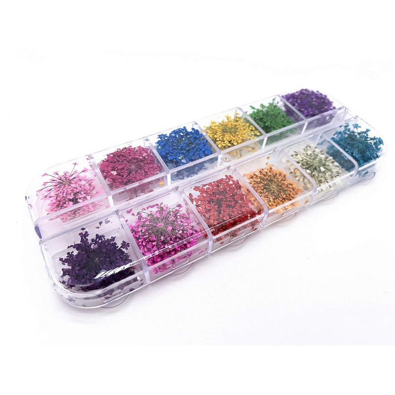 Dried Flowers, Lace, Pressed Flowers, 120 Sheets, Resin Art and Nails, 24 Colors x 5 Each Case, Transparent Storage Case Included