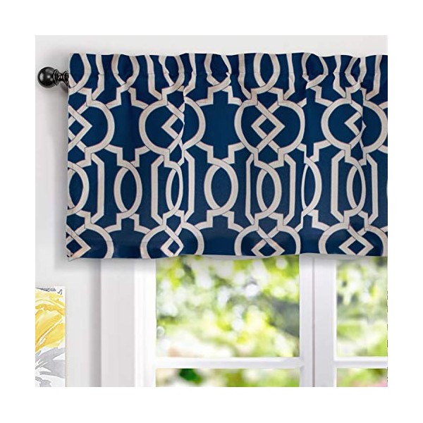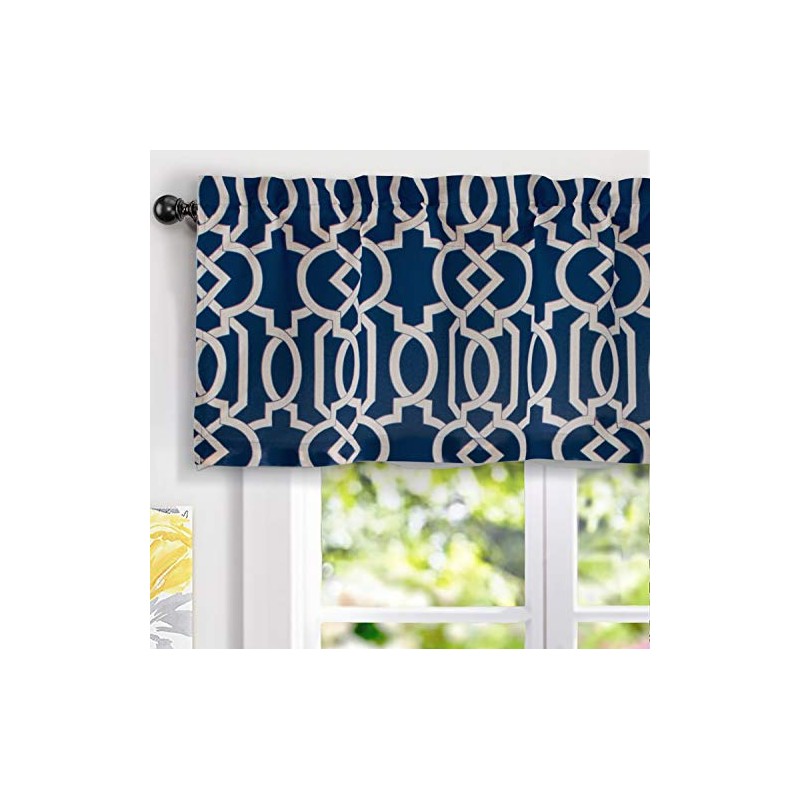 DriftAway Abigail Geometric Trellis Pattern Window Curtain Valance Rod Pocket 52 Inch by 18 Inch Navy