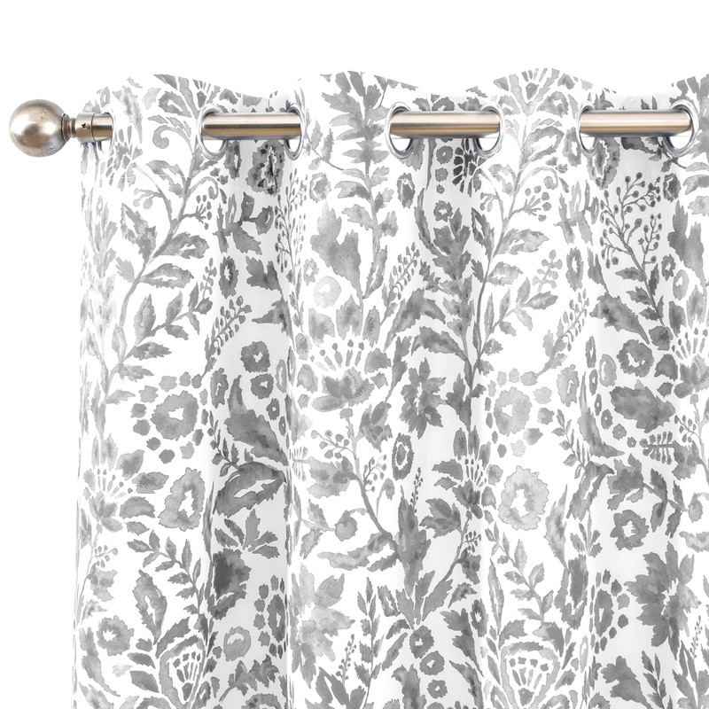 DriftAway Julia Watercolor Blackout Room Darkening Lined Thermal Insulated Energy Saving Window Curtains 2 Layers 2 Panels Each Size 52 Inch by 84 Inch Gray