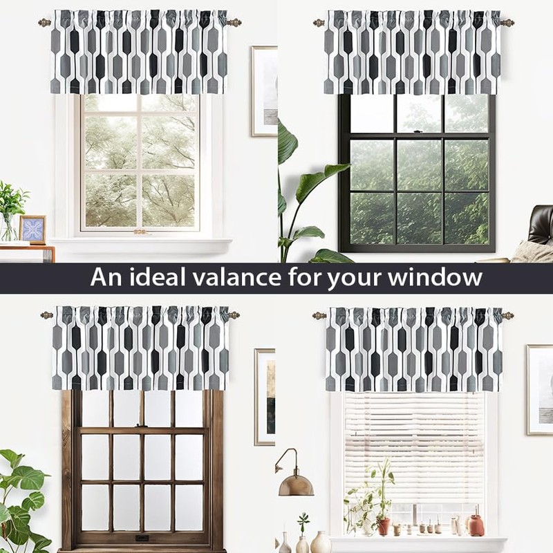 - UPGRADED VERSION & SERVES WELL: Our valance is made of high-quality material and exquisite workmanship, extremely soft and durable. The lined valance will help to block upper annoying light, give advanced privacy protection, prevent harmful UV rays from reaching your floors and furniture, efficiently prevent cold or heat transfer from outside, increase energy efficiency. Highly recommend completing the look with the matching curtain from our Riley Geo collection.