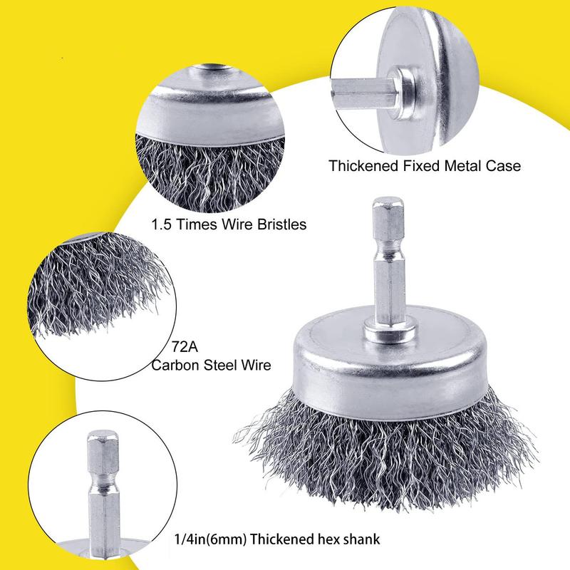 Drill Bit Wire Brush Tools Set for Summer Gift, Drill Bit Wire Brush Cup Set, Work Tools for Men, Multipurpose Drill Bit Wire Brush For Cleaning Rust, Hex Shank 1/4" Shaft, Power Tool Accessories