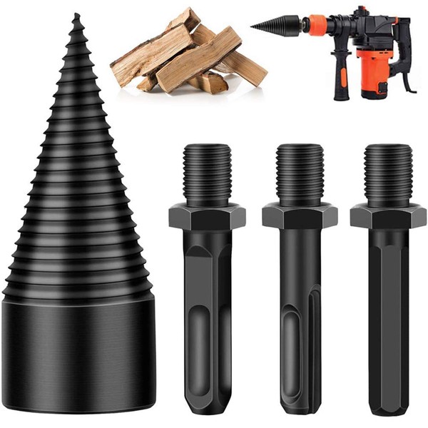 - 【3 types of drills】Our firewood cone drill bit set also contains 3 different types of drill handles that you can use for different types of electric drills. Wood splitter drill, total length: 141 mm, drill diameter: 32 mm, drill length: 92 mm.
