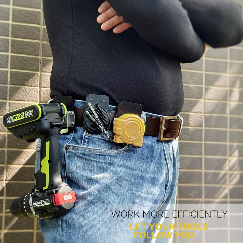 - EFFICIENT AND LIGHTWEIGHT WORK: Place your cordless drills, impacts, nailers, or other tools in this Compact drill holder that clips easily hanging and removing your belt, pockets, or tool bags.