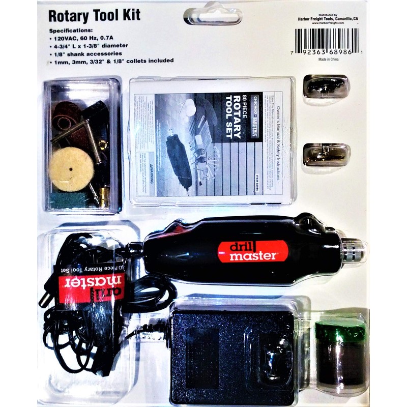 Here are all the tools you need for precision cutting, grinding, polishing, sharpening and drilling. The high speed rotary tool delivers up to 16000 RPM for working with a wide variety of materials.