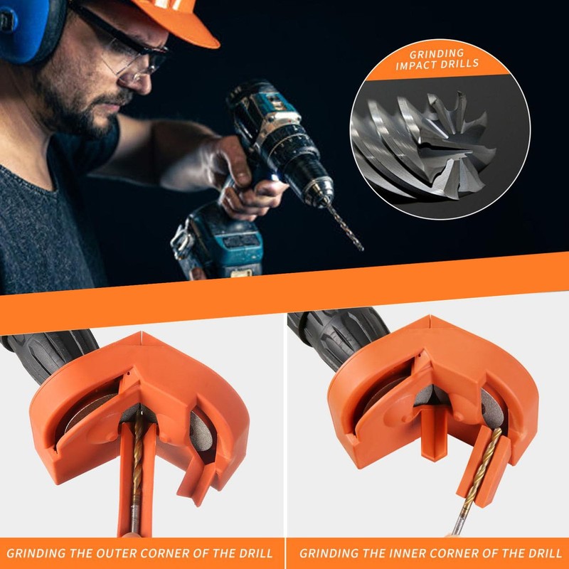 Drill Sharpener, Orange Portable Multipurpose Drill Bit Grinding Sharpener for High Speed Steel Carbide Cobalt Drill Bits