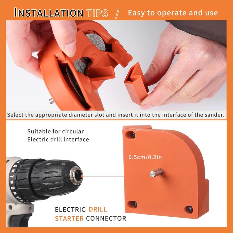 - ELECTRIC SHARPENER: This multifunctional sharpener is very practical and designed for sharpening flat knives, drills, scissors, cutlery and more. It is powered by an electric drill and is suitable for all types of drills such as high speed steel, carbide, spiral and cobalt drills. It can also be used for other tools such as kitchen knives, etc.