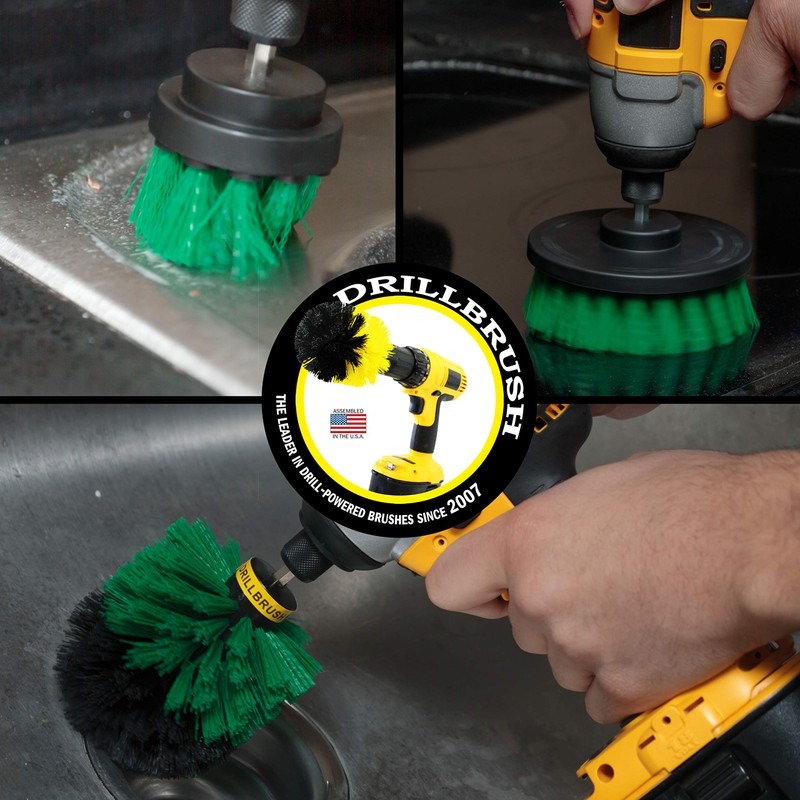 Drillbrush Green Kitchen Cleaning Drill Brushes - Stainless Steel Sink Cleaner/Copper Sink Cleaner - Electric Stove Cleaner/Gas Stove Cleaner - Kitchen Cleaner/Kitchen Brush - Cabinet Cleaner by Drill Brush Power Scrubber by Useful Products Store