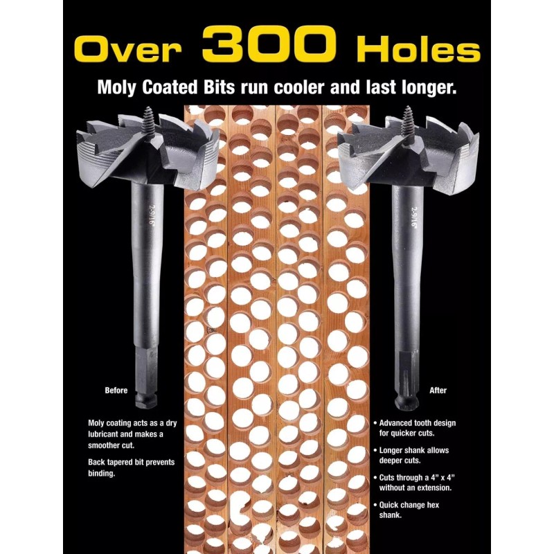 Drill Hog is proud to release the newest technology in Self Feed Drill Bits. These bits are made of Molybdenum M7 Steel. Molybdenum has a melting point of 4753° Fahrenheit! These bits run cooler and last longer than other bits!