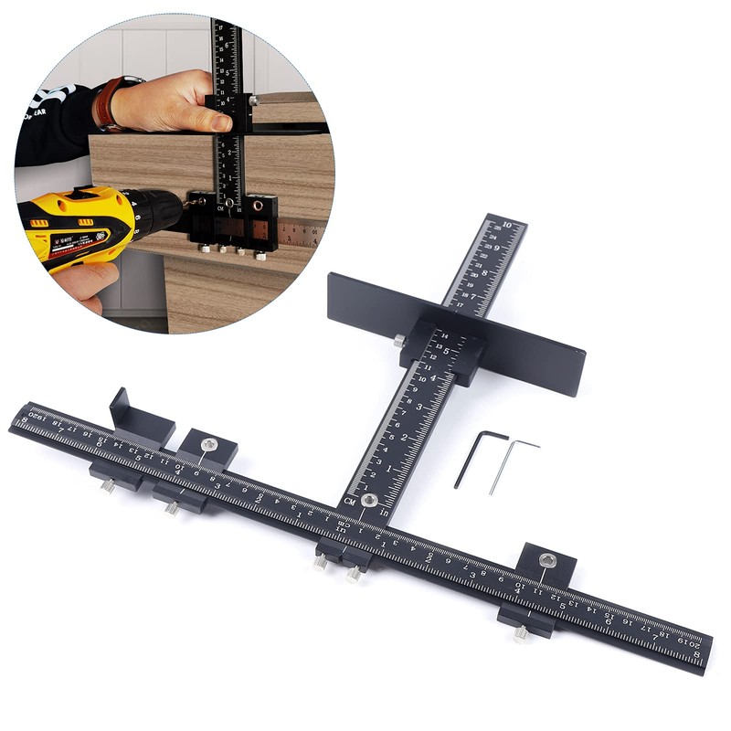Drilling Position Ruler Woodworking,Inches and Centimeters,Adjustable Jig Position Tool,Drilling Alignment Position Ruler