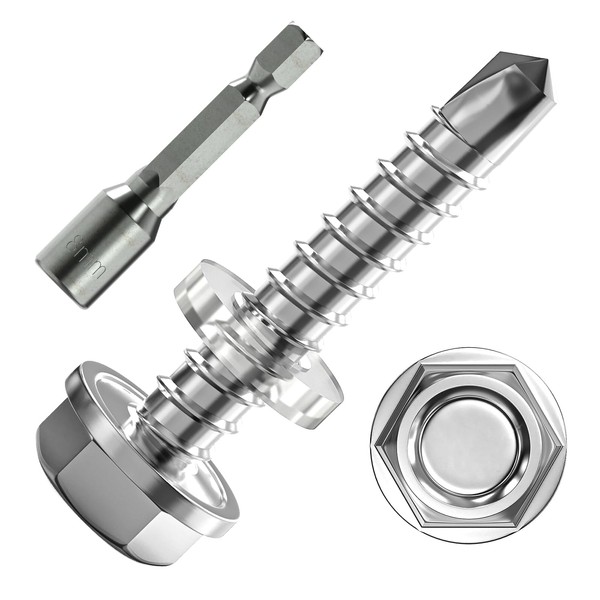 • Package Content: Pack of 50pcs M4.8 x 25mm Hex Head Bolts + 1 M8 Magnet Drill Sleeve These trapezoidal sheet metal screws are suitable for: fixing sheet metal, fixing gutters, sheet metal roofs, metal constructions and more. Self tapping screws with gasket are used for attaching sheet metal, profiles and metal plates to wooden surfaces. The self-tapping screws are very resistant to mechanical damage, which is very important during installation.
