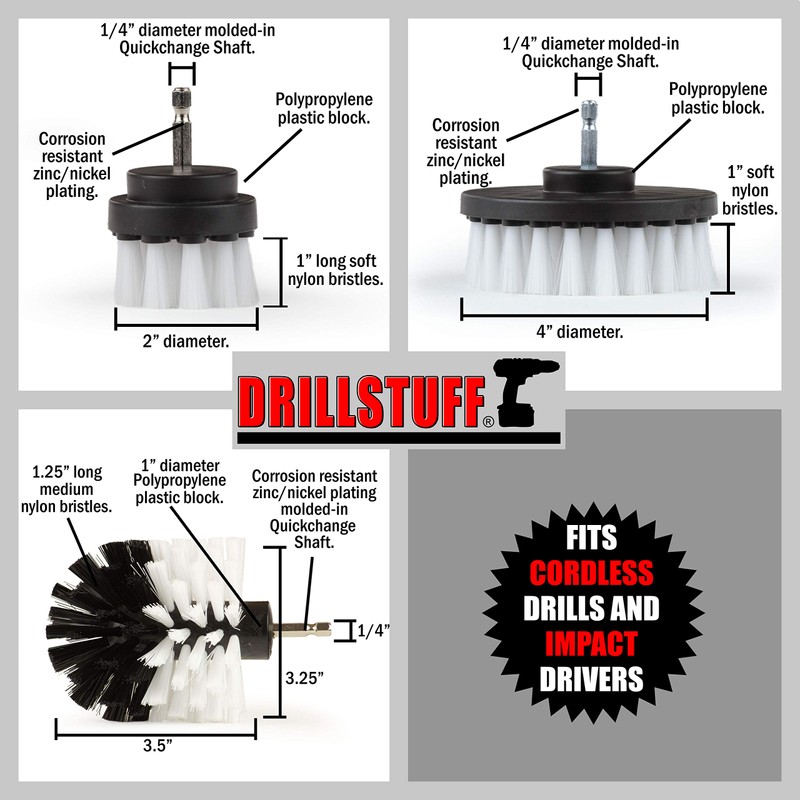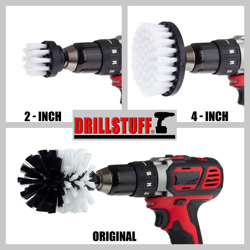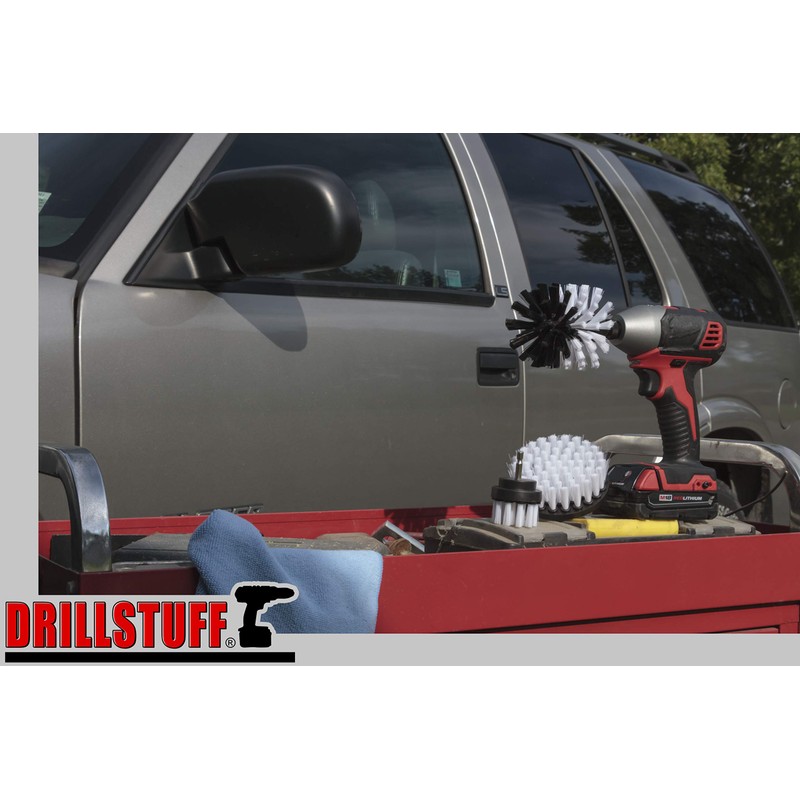 - Remember when your car interior was brand new? Use your favorite cordless drill with our Drillstuff brand soft white three piece scrub brush kit to restore your car or trucks interior to its original spotless color and make your car feel new again. Forget about hand scrubbing and tedious scouring with inferior hand brushes and sponges that fall apart in your hand. Use the power of your cordless drill to keep your car interior spotless, clean, and hair free, while saving time and effort.
