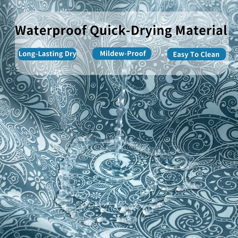 - 【WATER PROOF】The surface of the shower curtain has been specially treated, dripping water into beads and slipping down. Effectively prevent water splashing