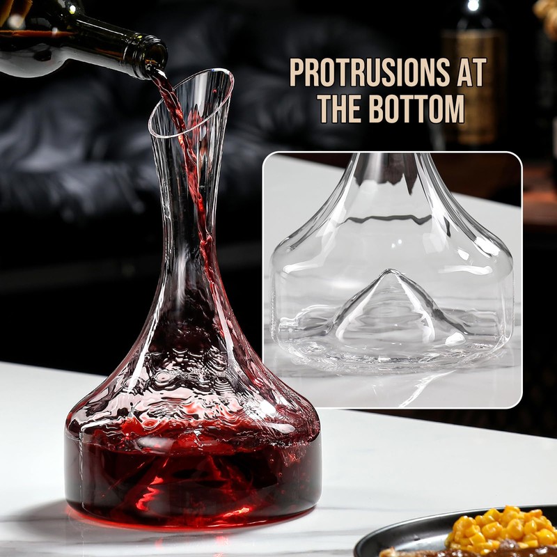 - Unique dense edge design:Our red wine decanter is handcrafted from lead-free crystal glass. Its slender neck makes it easy to handle, and its slanted top prevents spills and drips. Allowing you to enjoy the splendor and clarity of every sip
