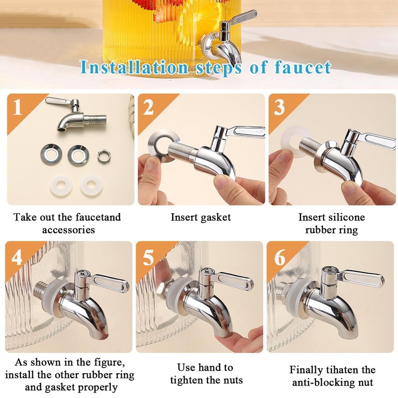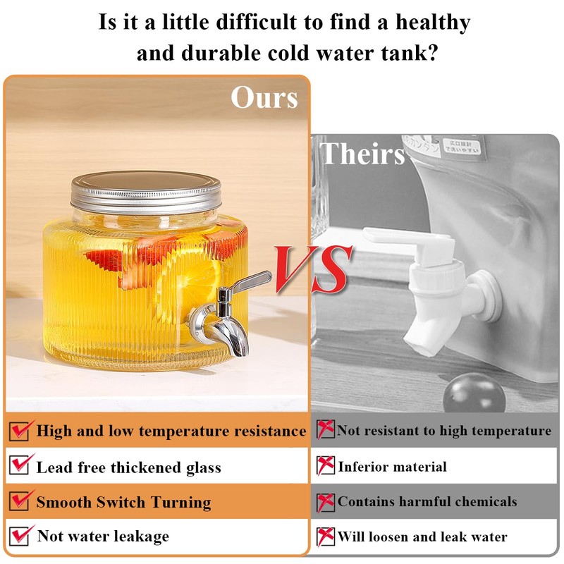 - 1. Premium Quality: This 2.5L drink dispenser is made of high-quality glass, ensuring durability and long-lasting use.