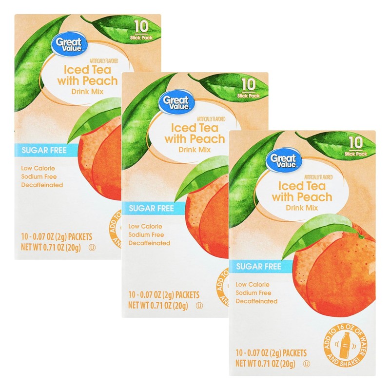 Drink Mix Bundle - 3 Boxes with 10 Packets Per Box - Low Calorie Flavorful Water Powder (3 Boxes, Iced Tea with Peach)