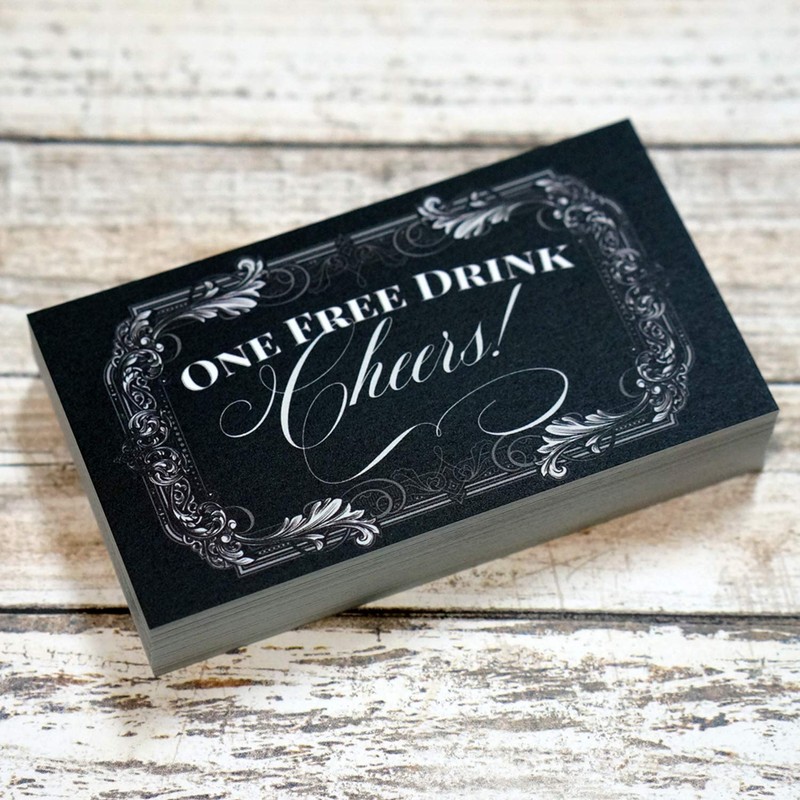 Drink Tickets for Events - One Free Drink Cheers for Black Tie Formal Wedding - Size 3.5x2 inches - Pack of 50