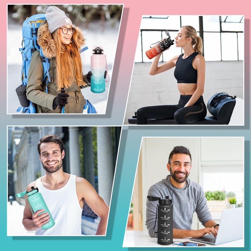 - Time markers and motivation quotes: The water bottle has clear time markings and water volume scales, so you can see at a glance how much water you have drunk today. These motivational quotes encourage you to drink enough water daily to stay healthy. The sports bottle helps you develop and maintain healthy habits and gives a sense of achievement.