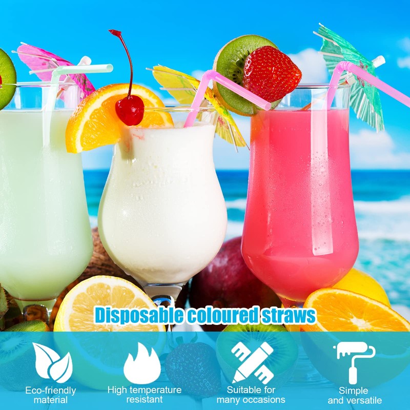 Our disposable plastic straws come in a variety of colors that pair perfectly with a variety of juices