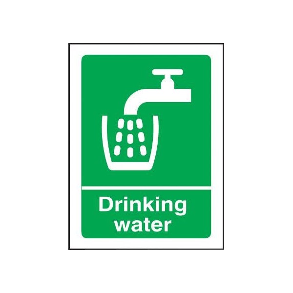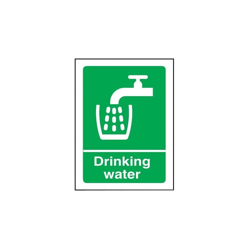 Sign, drinking water, SAV, outside height 100mm, outside width 75mm, sign colour: white on green, sign type: drinking water, sign material: vinyl, sign type: general.