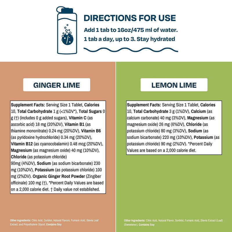 - Fizzy Flavor Fusion: Enjoy (3) 10-tablet tubes of Ginger Lime and (3) 10-tablet tubes of Lemon Lime Drinklits Daily Hydration, self-dissolving effervescent tablets to make lightly fizzy electrolyte replacement sports drinks.