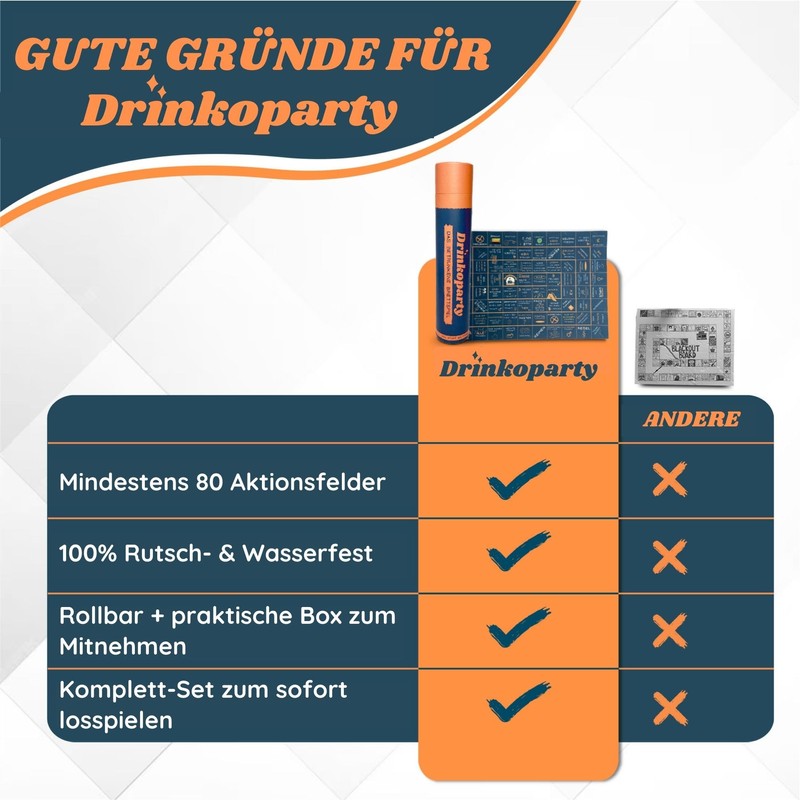 - 🎁 The perfect gift - Whether it's a birthday gift, festival, New Year's Eve, bachelor party or graduation. With Drinkoparty you do not give a game, but nights full of joie de vivre. Ideal for the buddy, best friend or just yourself. Because let's face it, who deserves a legendary party more than you?