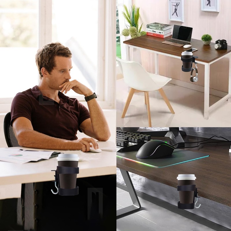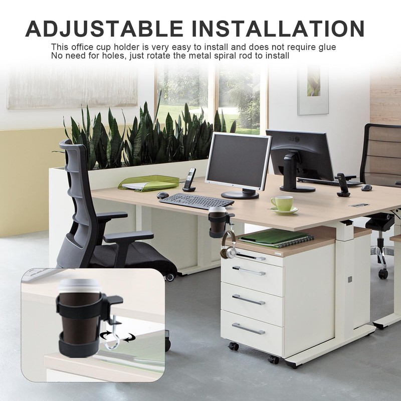 - Space-saving cup holder sup can be attached to the edge of the table top, on the edge of the bookshelf or to the armrest of different chairs to save space on the desk.