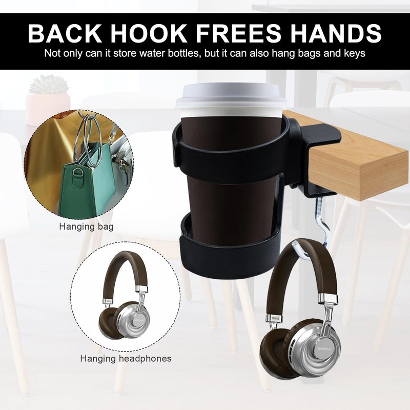 - 2 in 1 cup holder with hooks on the back, you can not only store your cup, but also hang your bag, keys.