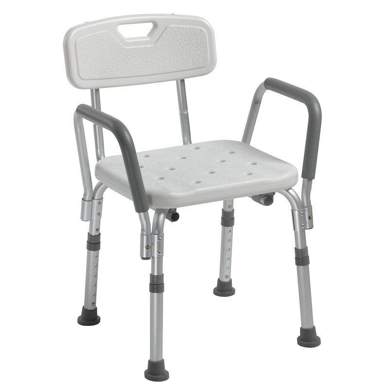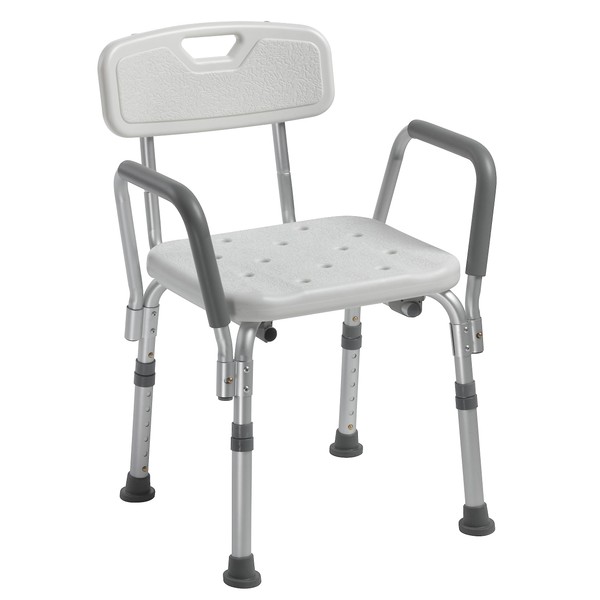 Drive Medical 12445KD-1 Shower Chair with Back and Padded Arms, Adjustable Height Bath Stool with Nonslip Feet, Tub Chair for Elderly, Bath Seat with Back, 350 LB Weight Cap, White
