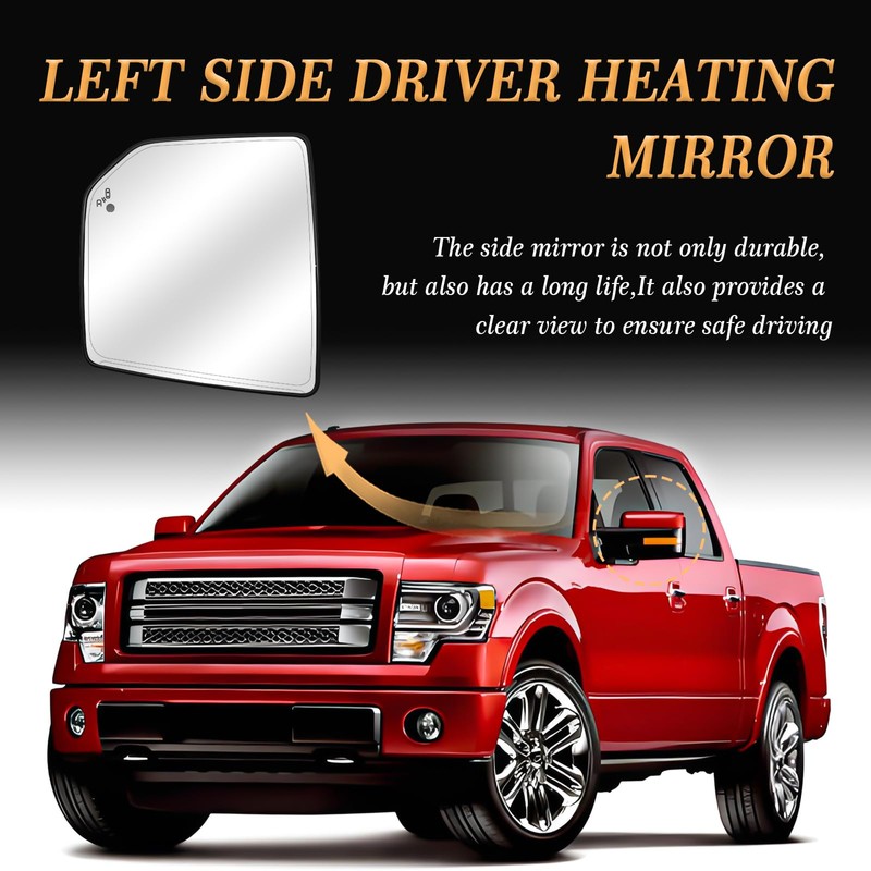 Driver Left Side Heated Mirror Glass with Blind Spot Detection System Replacement for F0rd F150 2015-2021 Side view Mirror With Rear Holder, For FL3Z17K707D