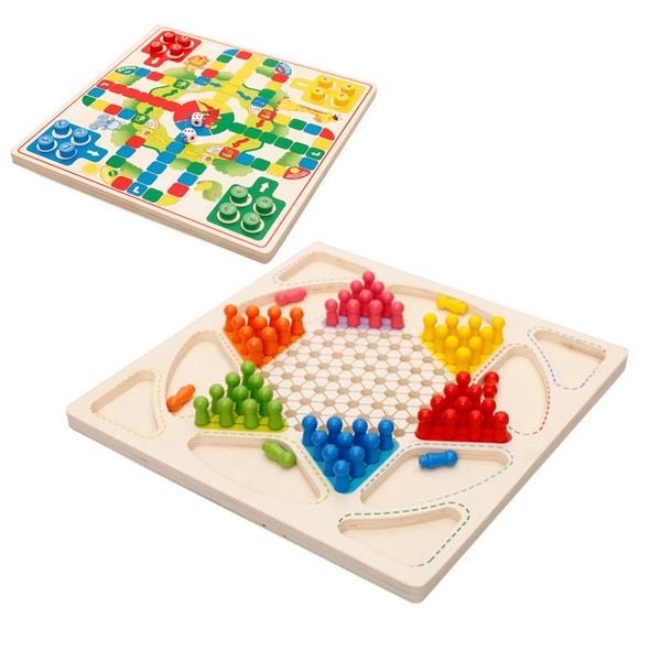 drizzle Ludo Board Game & Chinese Checkers 2 in 1 Natural Wooden Board Flying Chess Family Game for Adults and Kids