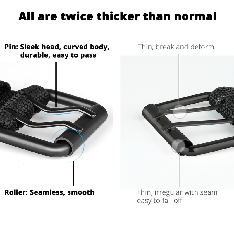 - Indestructible quality solid buckle. The prong and buckles are specially thickened, and its double holes row design helps to keep the pants very secure. You can use it every day to hold up your pants.