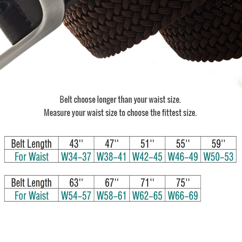 - Braided from multiple elastic bands, the elasticity last over 10 years. High quality solid brushed metal buckle, sturdy and durable, no fade no break. Tail leather wrap, easier to pass through the pants loops.