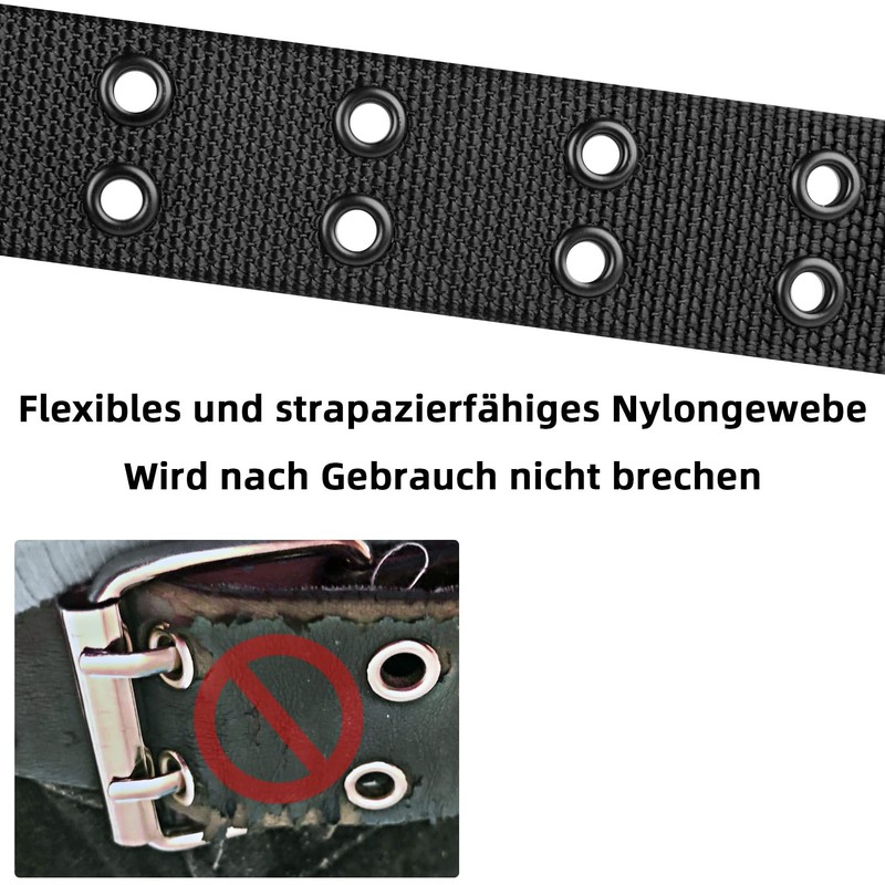 Drizzte Mens Belt Plus Size 110cm Nylon Canvas Webbing Belt Double Grommet Black