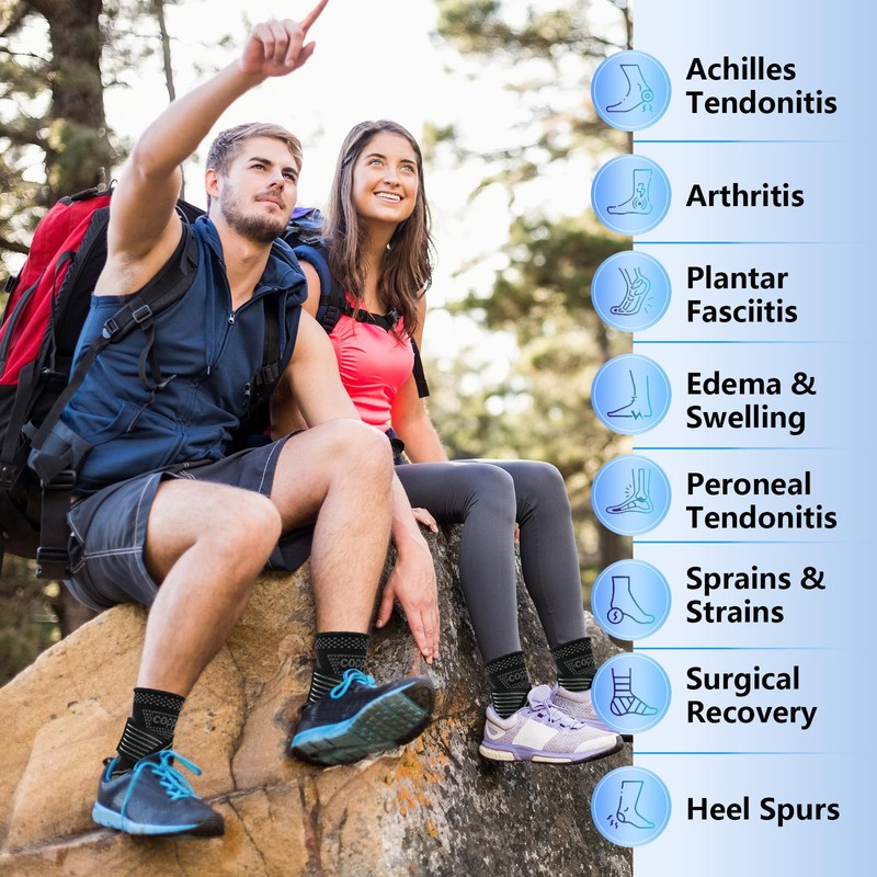 - Graduated Compression, Faster and More Effective Scientifically: Our compression ankle brace utilizes a scientifically graded pressure design to promote blood circulation, reduce swelling, and alleviate fatigue. Providing sustained compression, it is the optimal choice for men and women dealing with ankle pain, plantar fasciitis, tendonitis, and other foot discomfort. The foot sleeve compression support can help you recover activity quickly.