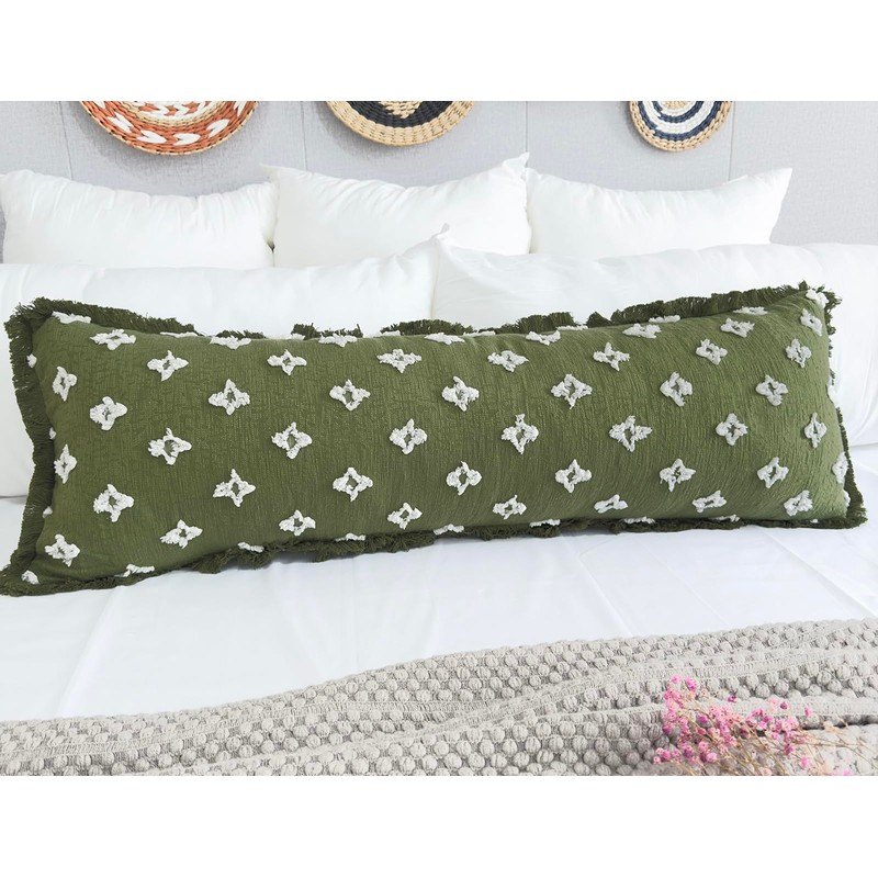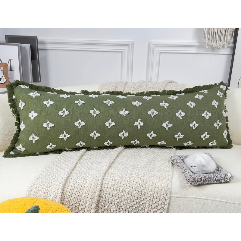 DRNOU Boho Long Lumbar Pillow Cover 12x48 with Tassel Fringe,3D Flower Patterned Extra Decorative Long Lumbar Pillow Cover Case for Sofa Couch Bed Livingroom Farmhouse,Sage Green