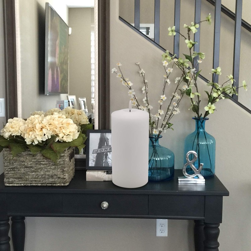 - ❤9" Large pure white LED flickering pillar candle with 4" diameter, made of real wax. Real candles looking, elegant and beautiful appearance, fit for most candle holders