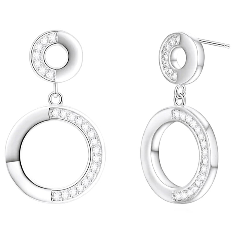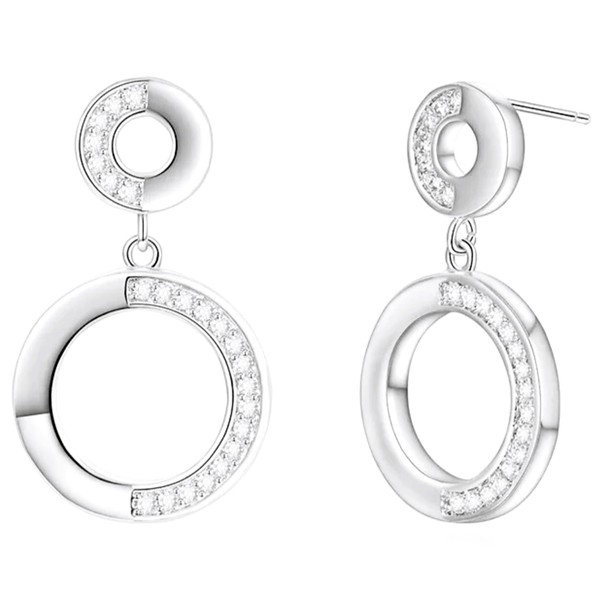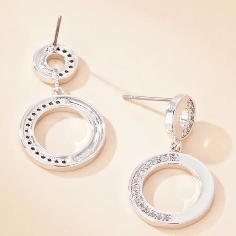 - DESIGN: Elegant circular drop earrings featuring a sophisticated double-ring design with sparkling crystal accents