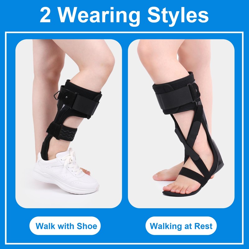 - Walking with shoe - The AFO foot drop splint fits most shoe easily. Our sagging feet are easy to trim with scissors. Good fit and comfortable to wear.