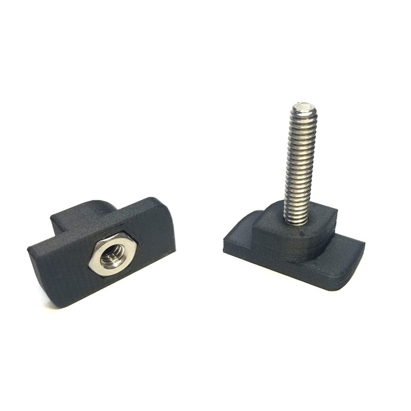 - Insert 1/4-20 bolt to use as a stud or insert 1/4-20 nut to used as a T-nut.