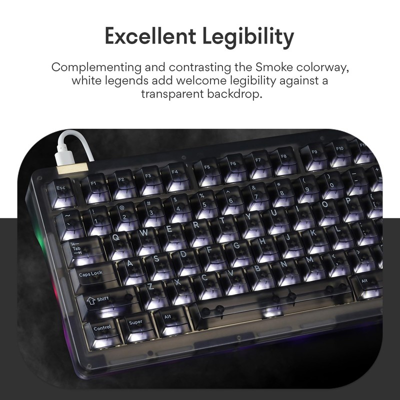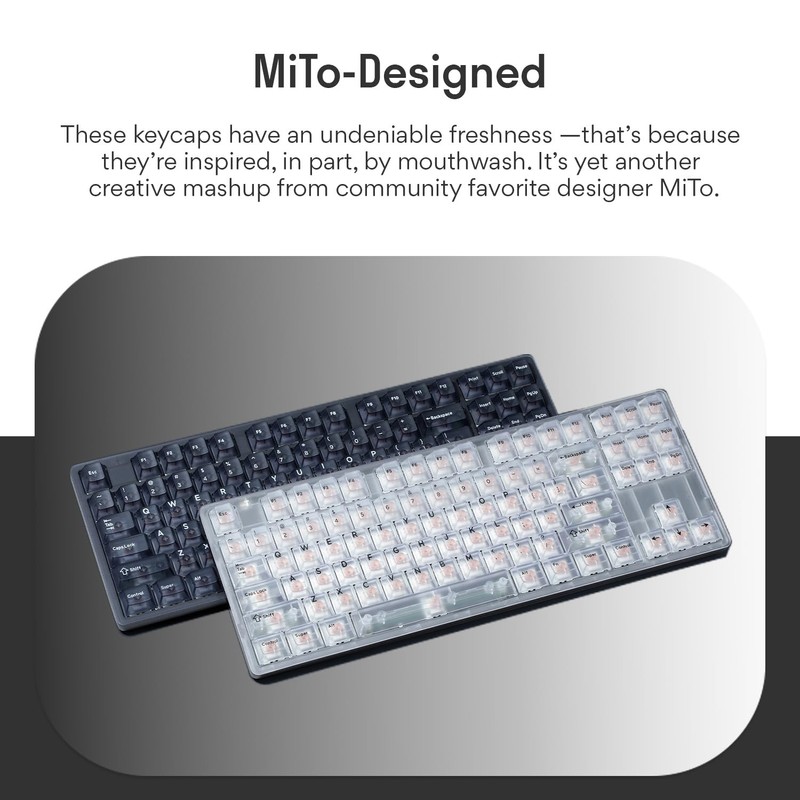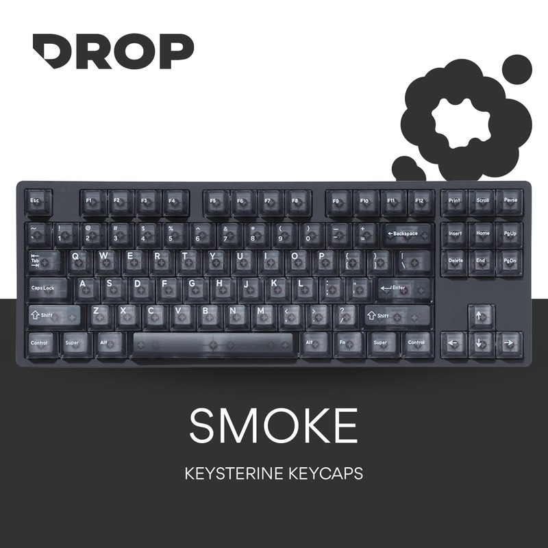 DROP + MiTo Keysterine Transparent ABS Keycap Set R2 - Smoke - 60%, 65%, 75%, TKL, WKL, 1800, 96-Key, Full-Size and More Cherry MX Style Keyboard Compatibility