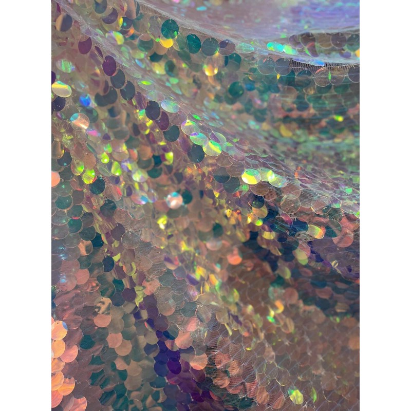 Drop sequins holographic iridescent mesh lace. 18 Mm Lure Dangling Sequins. BTY